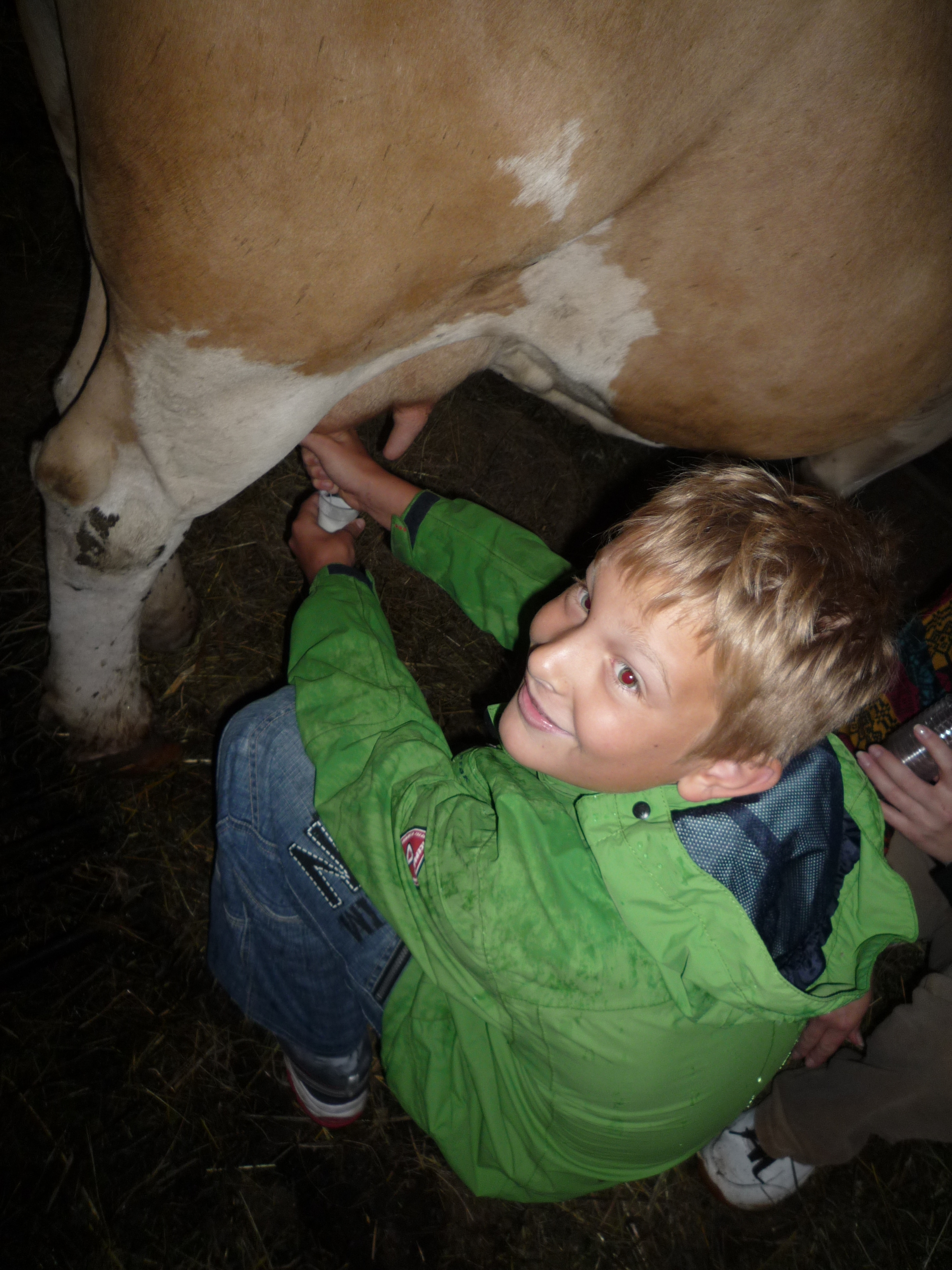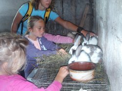 • ogled kmetije, hranjenje ovc, zajčkov, teličkov in poskus molže krav